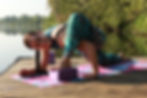 -Lunge- Place your block under the front foot for a deeper lunge. This will also give you more space, if you want to get deeper into this stretch by putting your elbows on the floor and alternatively getting that knee behind the shoulder as shown in the picture below.